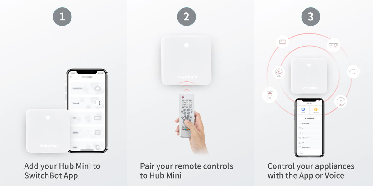SwitchBot Hub Mini works with Alexa, Google Assistant, Siri and other smart assistants too. You can now control your home appliances and other SwitchBot devices with simple voice commands, making life even more intuitive.