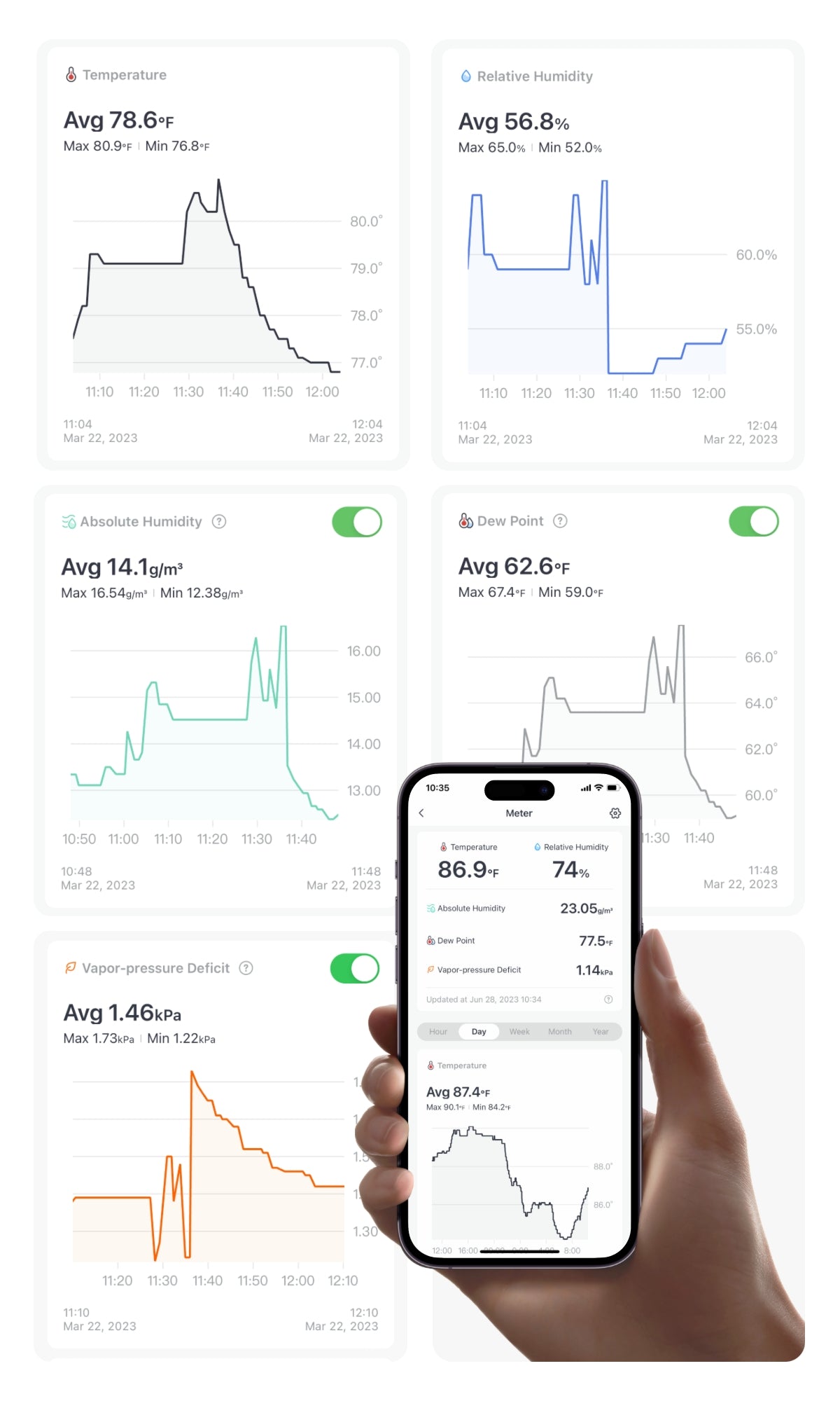 Our Meter includes a Swiss-made sensor component that is able to provide you with accurate room temperature and humidity measurements that you can trust.